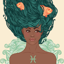 Spinning lazy circles around her latest conquest, acquisition, or interest, the Piscean woman is a mysterious, sensual mermaid, her secrets kept secure behind inscrutable dark eyes. She has a vivid mind, and is romantic and spiritual. Like the rivers and seas this sign swims in, Piscean women have deep emotions and strong undertows in their personalities, so watch out for still waters – they often hide a passionate, sensitive nature.
