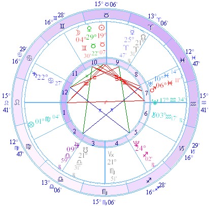 Again, we don’t know the time Renee and Kenneth met, but we can presume that the Moon was in Aries, which is especially fitting. The Moon would have activated her Venus and his Sun (their interchart Sun-Venus conjunction).