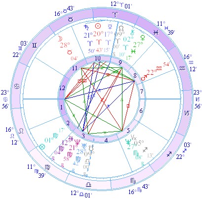 Because we don’t have a birth time for Renee, please note that we don’t know her Ascendant or house positions. The above chart is drawn for noon.