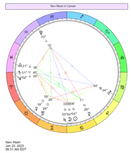 | Jun 25 | 6:31 AM | New Moon in Cancer | 4 Can 08' |