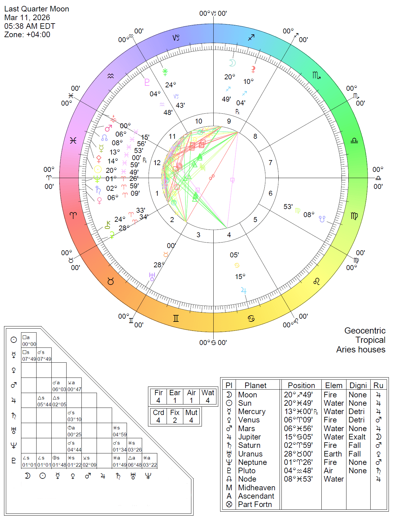 Mar 11, 2026, 5:38 AM, Sun square Moon (Last Quarter Moon)