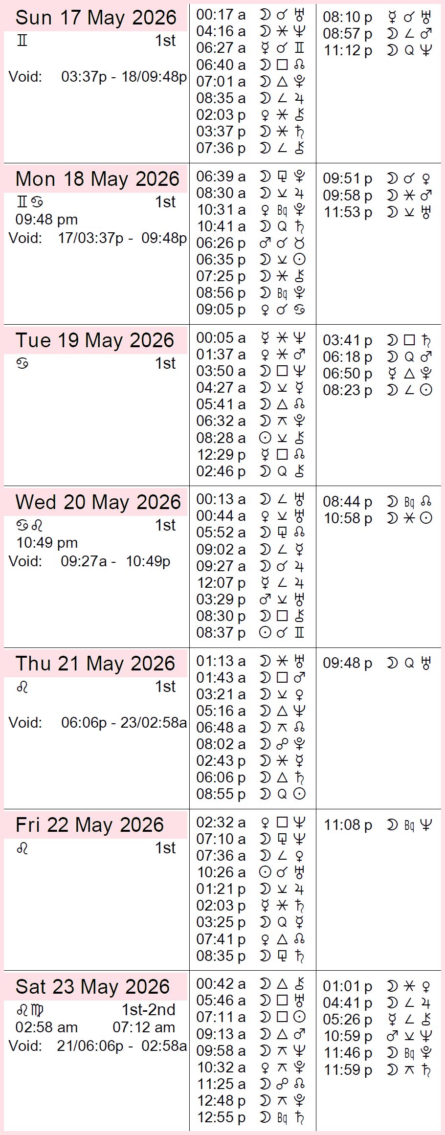- This Week in Astrology Calendar: May 17th to 23rd, 2026