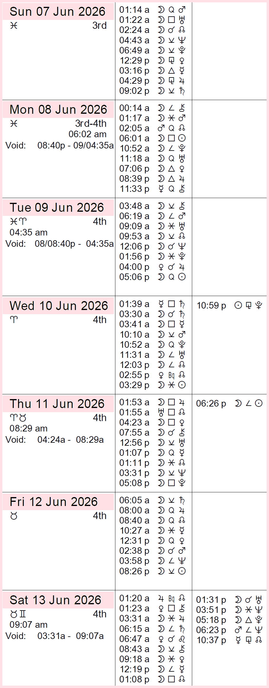 - This Week in Astrology Calendar: June 7th to 13th, 2026